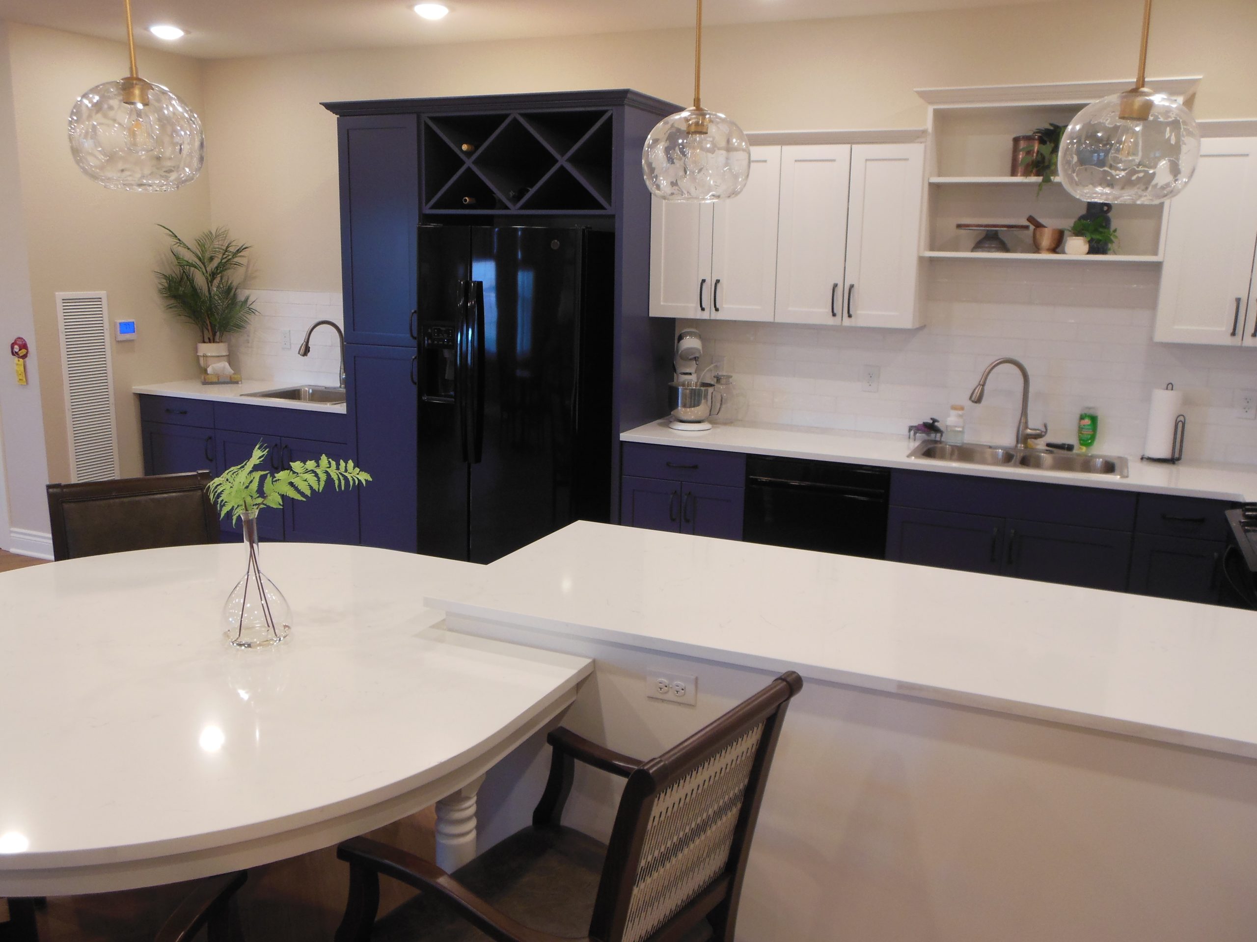 • Deco items placed along kitchen shelving